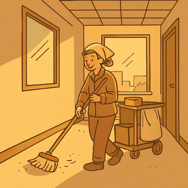 매일 새벽이면 한 아주머니가 조용히 복도를 쓸고 닦습니다.